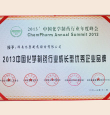 2013年中國醫(yī)藥行業(yè)成長型優(yōu)秀企業(yè)品牌
