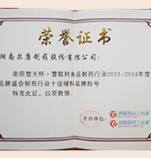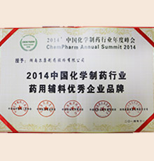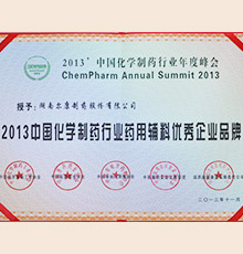 2013年中國化學制藥行業(yè)藥用輔料優(yōu)秀企業(yè)品牌